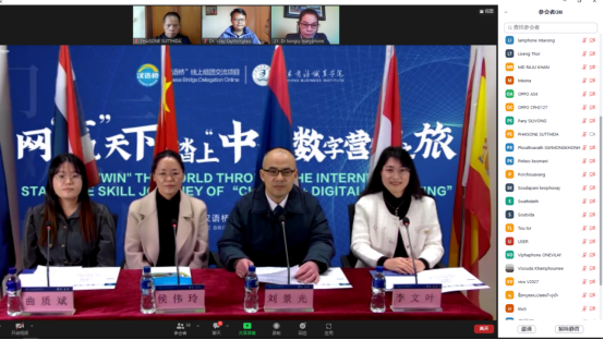 The 2022 “Chinese Bridge” Online Group Exchange Project of Our School was Successfully Completed.... COLUMN:[Events] DATE:2022-12-22 Recently, the “ ‘Win’ the World through the Internet, Start the Skill Journey of “Chinese + Digital Marketing” was held in our school, which was sponsored by the Chinese Foreign Language Exchange Cooperation Center of the Ministry of Education and undertaken by our school. More than 130 students from Laos, Bangladesh, Indonesia, Thailand, Vietnam and Spain jointly participated in the onli... ...
