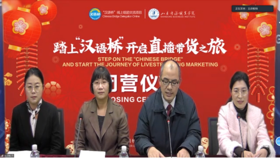 The 2022 “Chinese +Livestreaming Marketing” Chinese Bridge Online Group Exchange Project was Held in Our School.... COLUMN:[Events] DATE:2023-01-17 Recently, “Step on the ‘Chinese Bridge’, and start the journey of livestreaming marketing” project was organized in our school, which was sponsored by the Center for Sino-foreign Language Exchange and Cooperation of the Ministry of Education.On behalf of our school, Mr. Zhang Yunsheng,vice president of Shandong Business Institute, delivered a warm speech to the students and teachers partic... ...