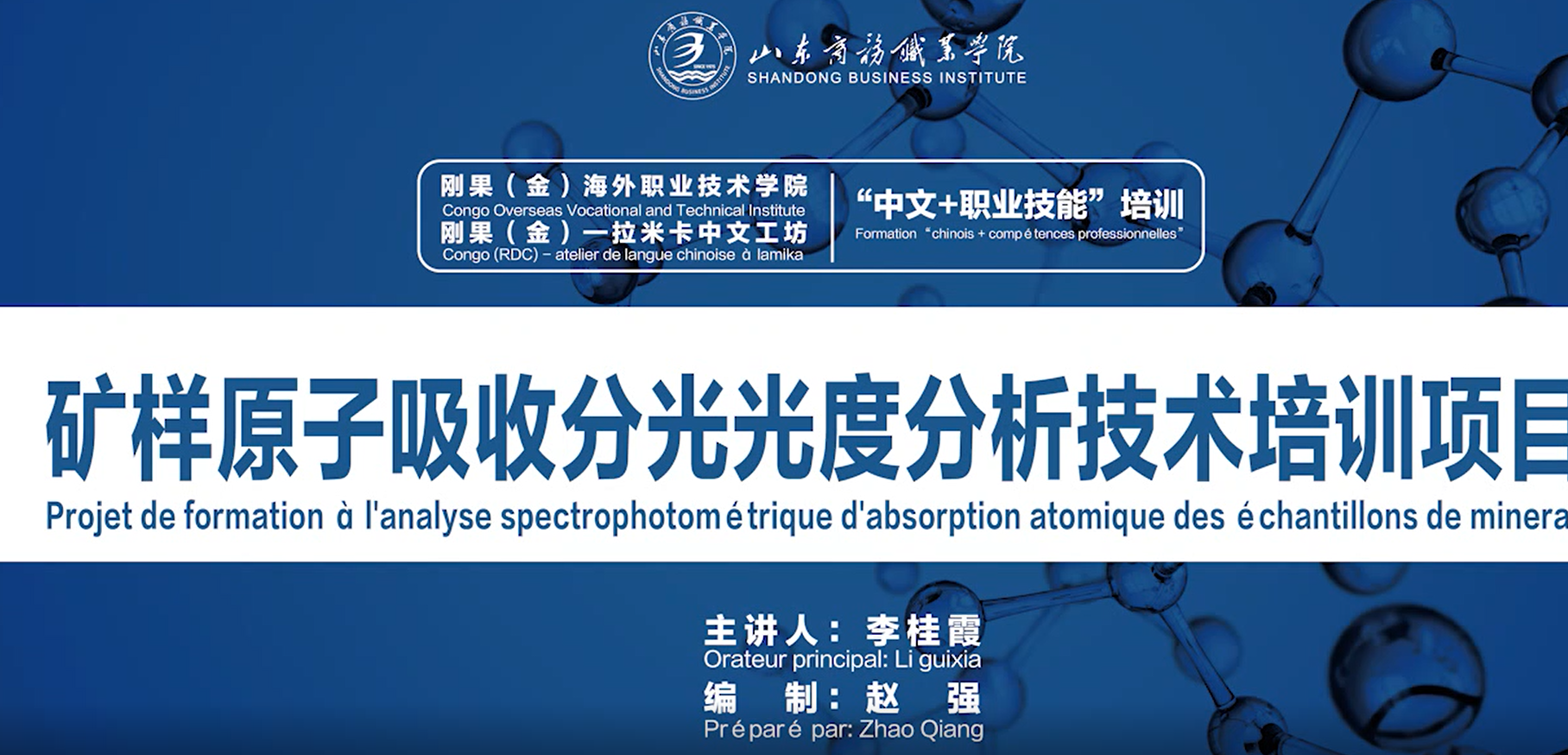 Shandong Business Institute--Congo (DRC) Overseas Vocational College and Congo (DRC)--Ramika Chinese Workshop “Chinese+Vocational skills” Overseas Staff Training.... COLUMN:[Key Research Fields] DATE:2021-12-27 Shandong Business Institute--Congo (DRC) Overseas Vocational College and Congo (DRC)--Ramika Chinese Workshop “Chinese+Vocational skills” Overseas Staff Training officially kicked off. Mr. Zhao Qiang and Mrs. Li Guixia, associate professors of School of Food Science and Technology, took the mineral sample inspectors of Lamika Co., Ltd. of the Congo (DRC) as the training objects to ... ...