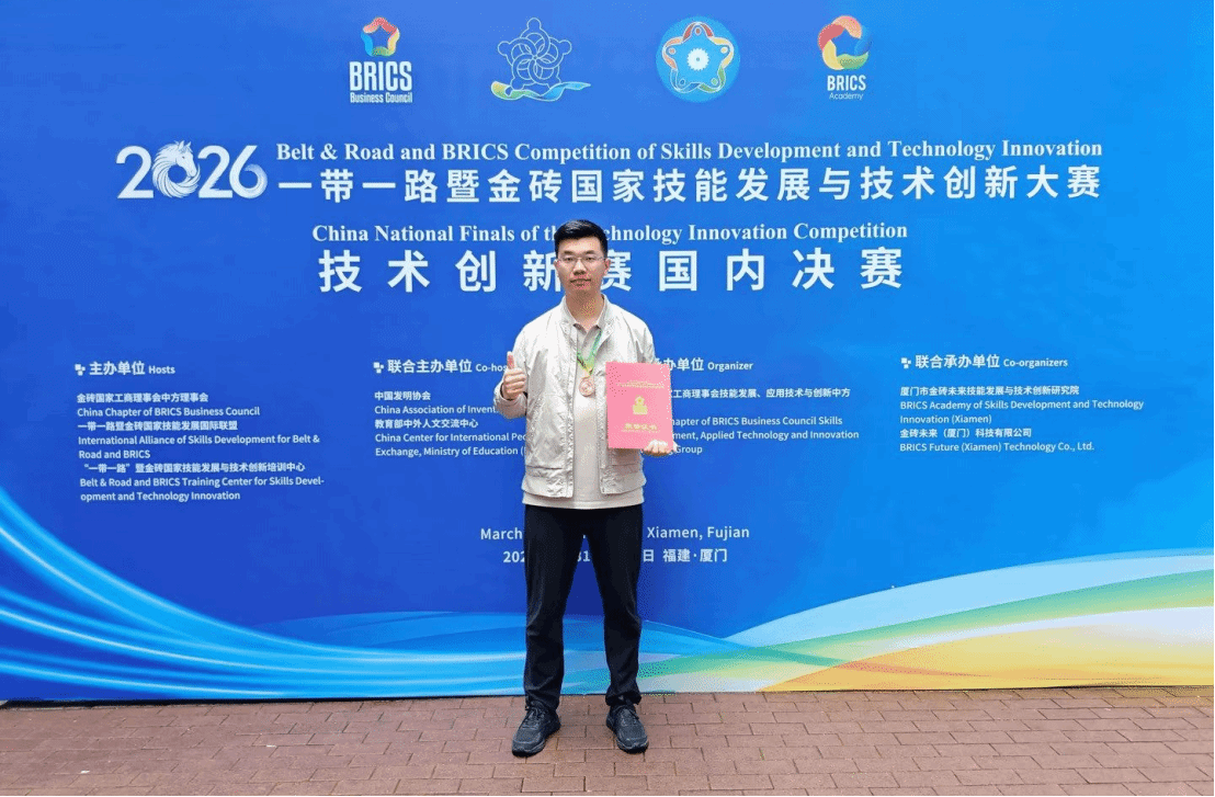 From April 1 to 3, the National Final of the Technical Innovation Competition of the 2026 Belt and Road & BRICS Skills Development and Technological Innovation Competition was held in Xiamen. Shandong Business Institute, together with Yantai AI Application Big Data Technology Co., Ltd., won the bronze award in the Digital Agriculture and Food Security Track with the project "Digital Intelligent Granary: Intelligent Management Platform for Grain Production Safety". This competition was held for undergraduate and vocational college students to compete on the same stage, demonstrating the college's technical strength and industry-education integration achievements in the digitalization of food security.
