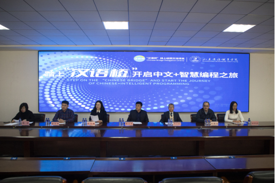 The opening ceremony of “Chinese Bridge”--”Chinese+Intelligent Programming”was held in Shandong Business Institute(SDBI). Itwas hosted bythe Center for Language Education and Cooperation of the Ministry of Education and undertaken by Shandong Business Institute. Mr. Zhang Yunsheng, vice president of SDBI,Mr.khamsavay Gnommilavong, president of Lao-German Technical College,Pitchayaphant Charnbhumidol, Ph.D., vice president of Rangsit University, Mr. Tang Lin,Director of Thailand Innovation Center, Ms. Zhao Lixia,Director of Training Division of Nonferrous Metals Industry Talent Center, Mr. Chen Zhiqiang, director ofYantai Foreign Affairs Office attended the meeting. More than 200 students from 9 countries attended the opening ceremony.