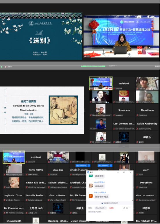 It is reported that the “Chinese Bridge” online group project is the first online short-term project organized by Shandong Business Institute. In order to enhance students’ sense of participation and experience, teachers carefully prepared and set up video courses including “Magical Artificial Intelligence”, “Interesting Virtual Reality”, as well as “Appreciation and Reading of Classic Poetry”, “History of Chinese Computing”, “Introduction to Shandong Cuisine Culture”, etc.