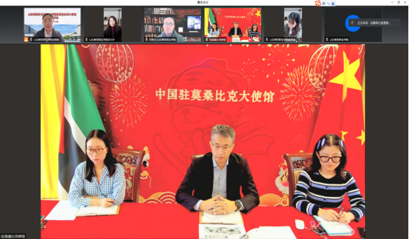 Online meeting between the Chinese Embassy in Mozambique and Shandong Business Institute