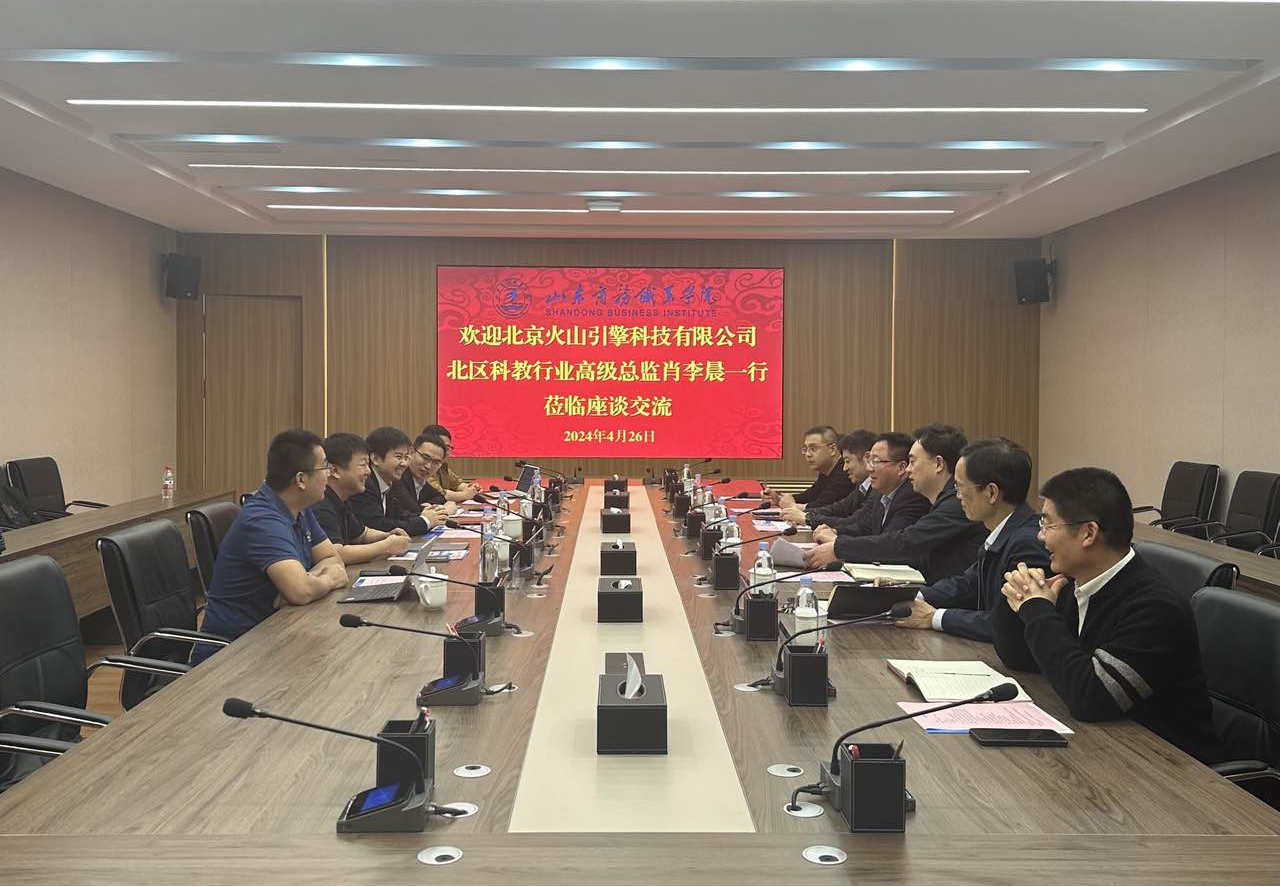 Recently, Xiao Lichen, Senior Director of Science and Education Industry in the Northern Region of Beijing Volcano Engine Technology Co., Ltd., and his delegation visited our school. Zhang Yue, the school leader, along with the heads of the School of Economics and Management, the School of Information Engineering, and the School-Enterprise Cooperation and Employment Work Office, received the visitors and held a symposium in the conference room on the first floor of the office building to discuss various issues related to cooperation between the school and the enterprise, and jointly explore new spaces for cooperation.