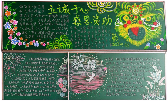 In order to strengthen the education of integrity, gratitude, inspiration and success for students, and to cultivate new-age college students with virtue, determination and self-improvement, the School of Culture and Tourism has carried out a series of activities of integrity education by combining the characteristics of students and professional features. The first is to hold a class meeting on the theme of integrity, the second is to carry out training and knowledge competition on student loans, and the third is to carry out blackboard design activities.