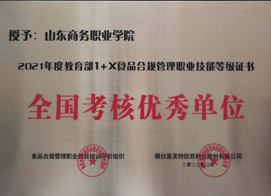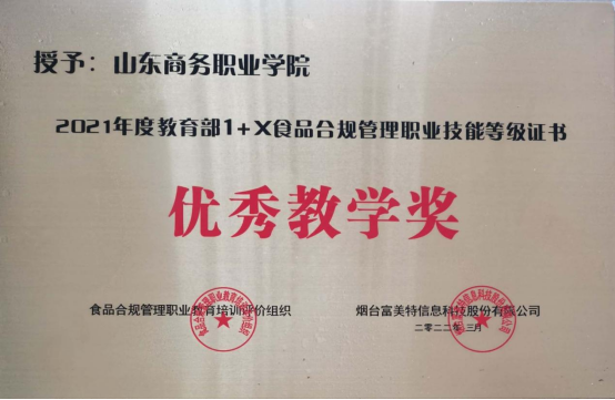 Recently, Yantai Fumeite Information Technology Co., Ltd. held an online summary and commendation meeting for the 2021 vocational skill level certificate of 1 + X food compliance management online. Our school won the excellent teaching award of the 2021 vocational skill level certificate of 1 + X food compliance management of the Ministry of education and the excellent unit of national assessment.