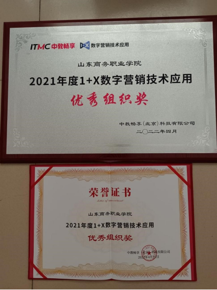 Recently, the Digital Marketing Technology Application Center released the 1+X Digital Marketing Technology Application Award, and our school won the Excellent Organization Award.
